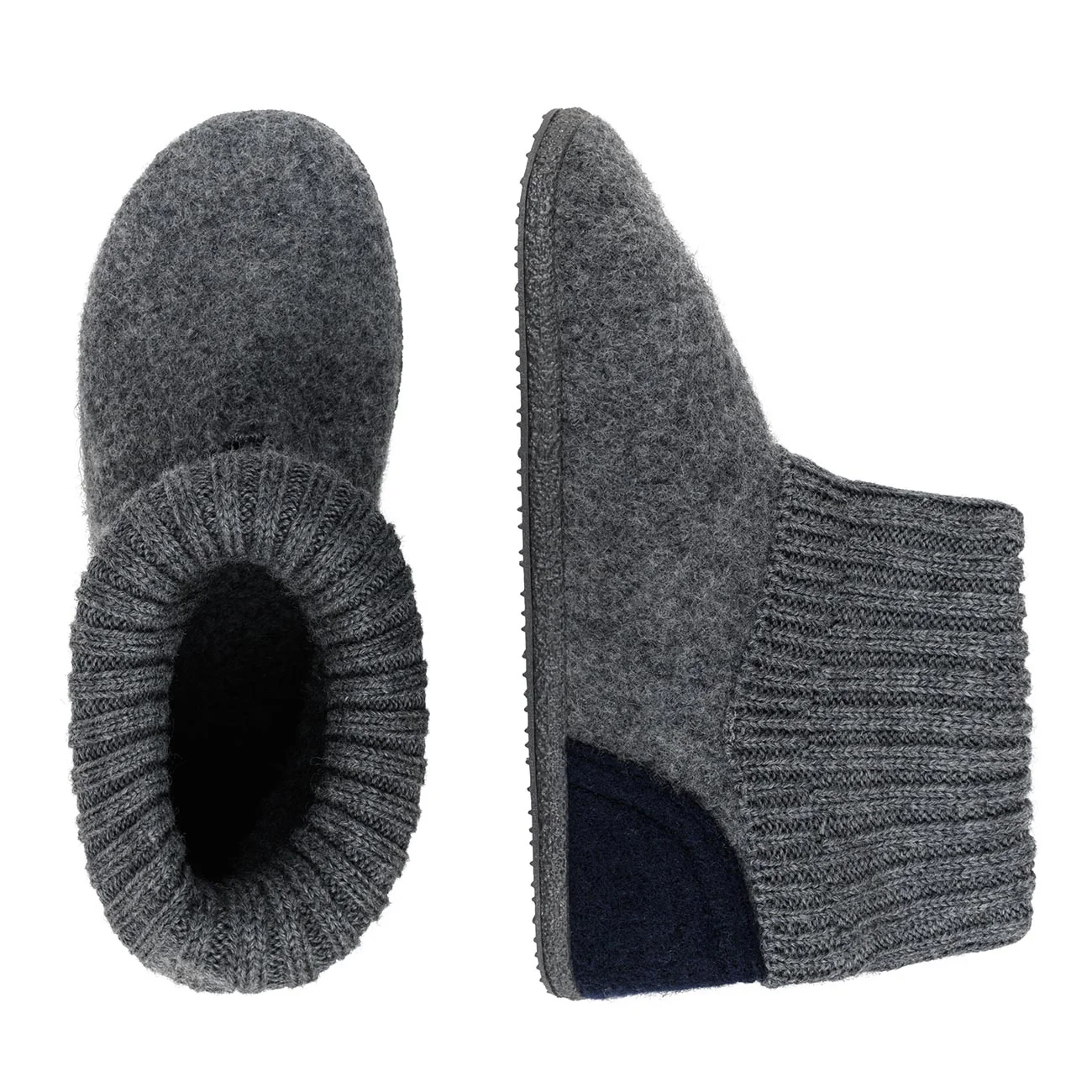 The original slipper made from 100% virgin wool fabric with a patented rubber sole has been pampering GIESSWEIN customers with warmth, comfort and relaxation since 1974. Available in various colour combinations and masterfully crafted with knitted ribbed cuffs, a reinforced wool heel and a soft anti-slip sole, these slippers are particularly flexible and give you the natural feeling of walking barefoot. Effortless to slip on and off, even warmth and carefree lightness maximise comfort. Highlights of these slippers: 100% virgin wool fabric, non-slip sole, reinforced heel and knitted cuffs.
